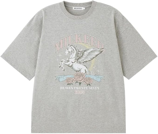 バックの天使の翼が目を惹くTシャツ。煌めきを放つ翼のラインが美しく、後ろ姿に天使の気配を漂わせます。色は2色展開。ホワイトなら儚くピュアな天使に、グレーで少しアンニュイな天使に。双子コーデにすれば、ホワイトとグレーのコントラストが引き立ち、淡くロマンチックな世界観を演出します。