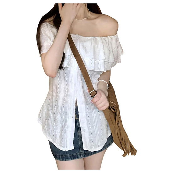 全身ホワイトコーデでガーリースタイルもデニム合わせでカジュアルスタイルも叶います♪