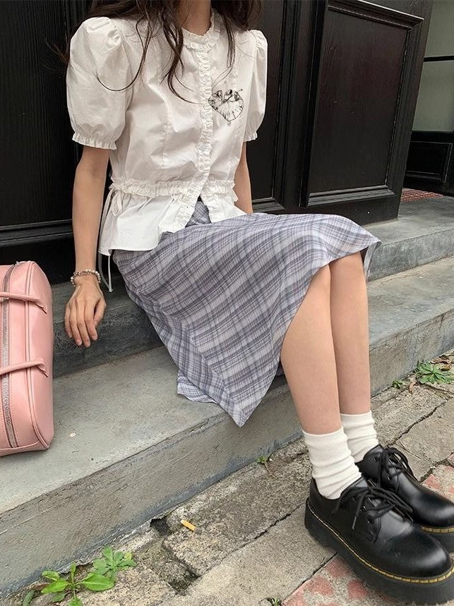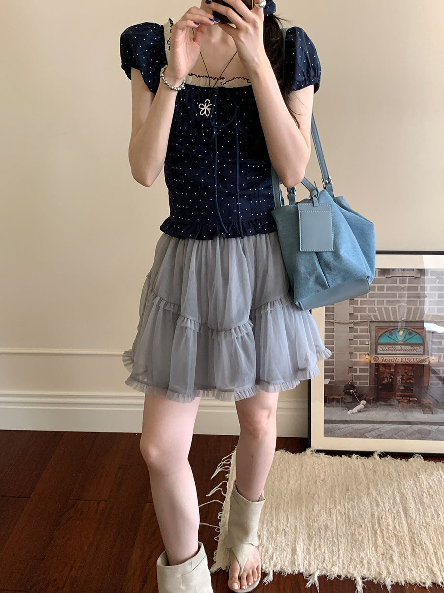 ころんと可愛いパフスリーブにトレンドのドット柄。ガーリーなのに大人っぽい、上品な可愛さが魅力のトップスです。エンジェルコアに初めて挑戦する子にもおすすめ♪