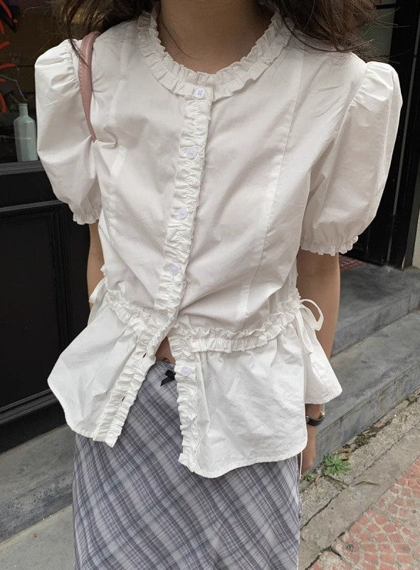 エンジェルコアには欠かせないフリル感♡くしゅっと寄せたウエストリボンがアクセント!