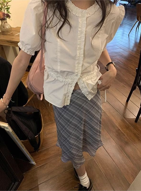 フリルスカート×さらっとした軽やかな素材感で甘さとラフさのバランスGood♪Tシャツやブラウスと合わせて、ゆるっと可愛いエンジェルコアスタイルが楽しめます!