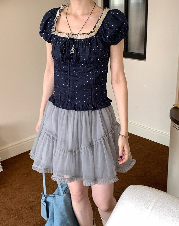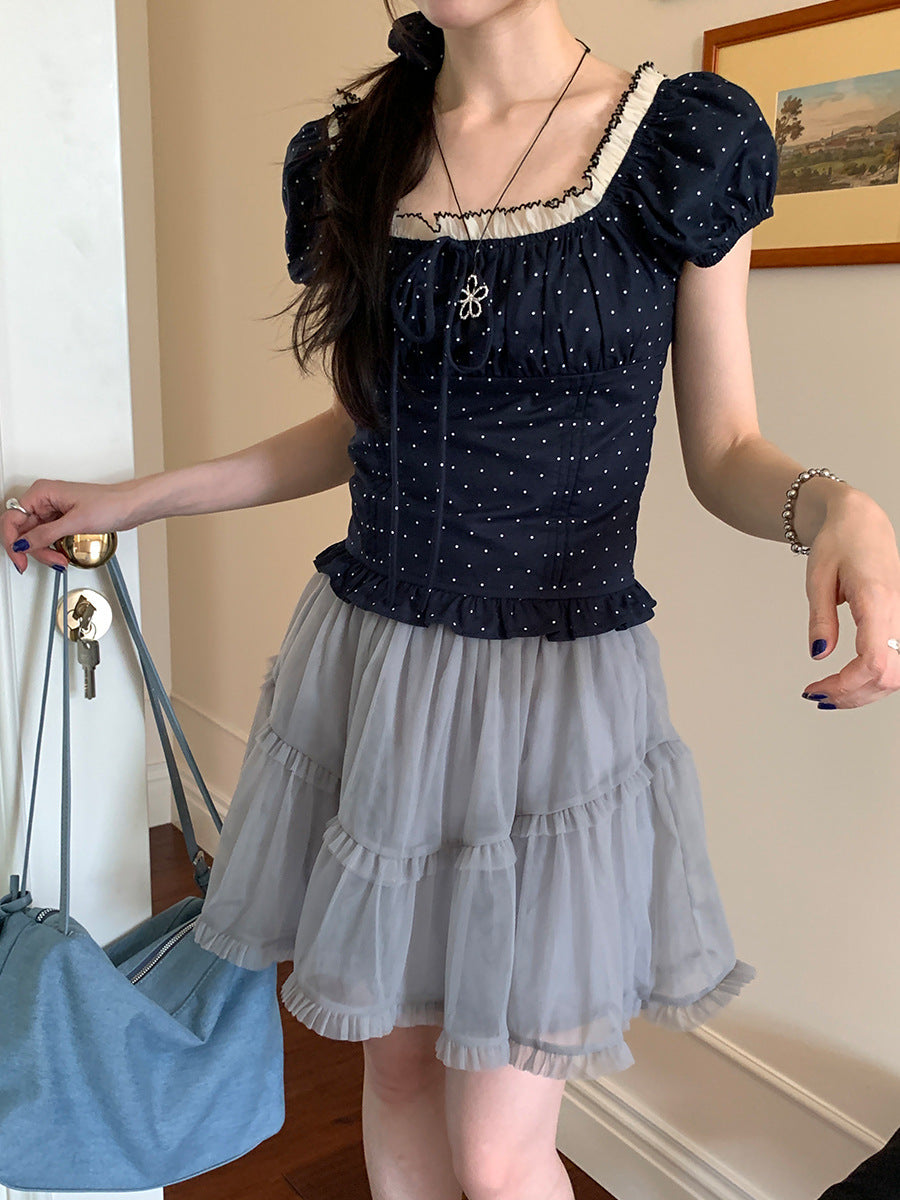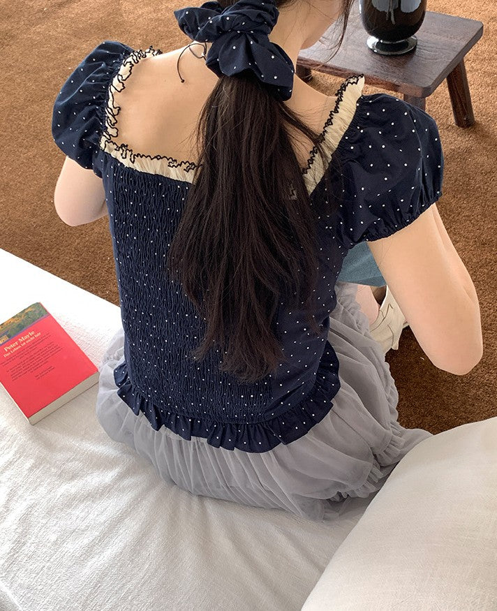 ドット×フリルで今っぽく☆【ドット柄トップス】