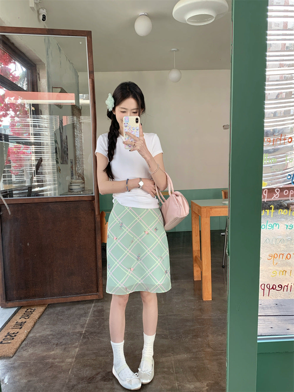爽やかなミントグリーンを差し色に♡シースルー素材のスカートは、歩くたび軽やかに揺れて涼しげ。夏のエンジェルコアにぴったりです♪