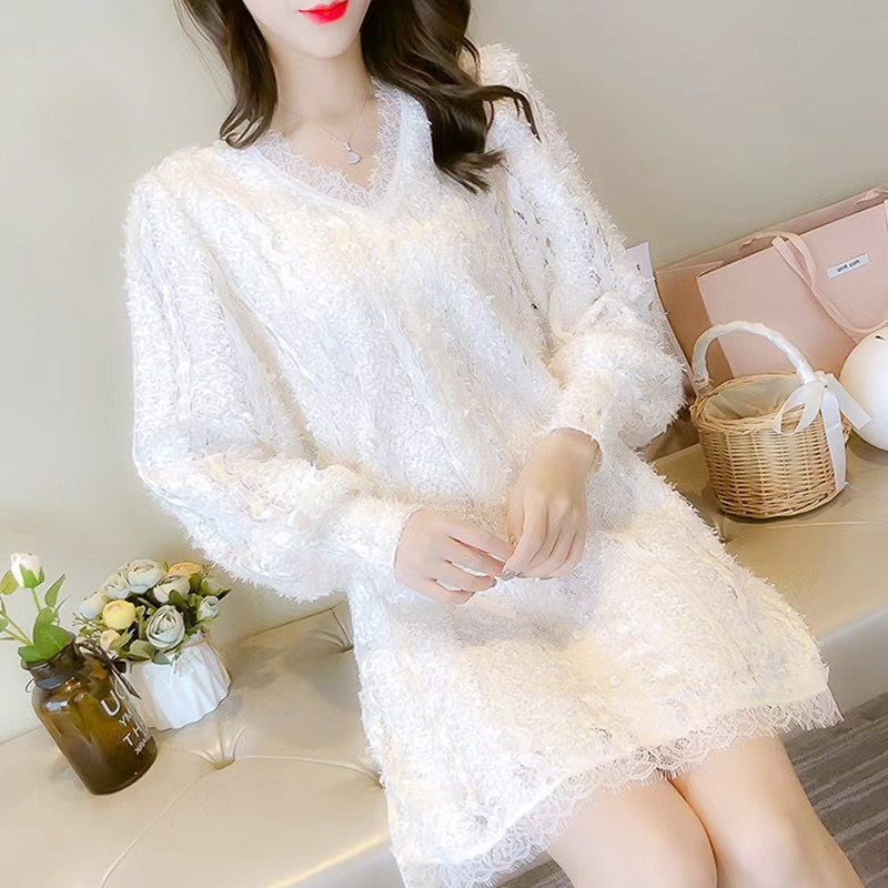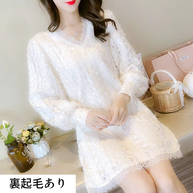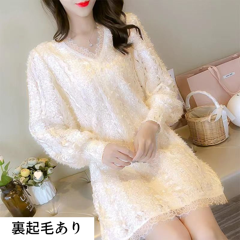 繊細なレースの表情と、ふわっと起毛したフリンジの編み地が美しいレースニットワンピース。ゆったりとしたシルエットに、ミニ丈×レースの甘さが絶妙なバランス感で、大人っぽくも可憐な雰囲気に仕上げてくれます。デートやお呼ばれにもぴったりな、ちょっぴり特別な日に着たい一枚。ブーツ合わせでクラシカルに、パンツをレイヤードしてこなれ感を出すのもおすすめ◎