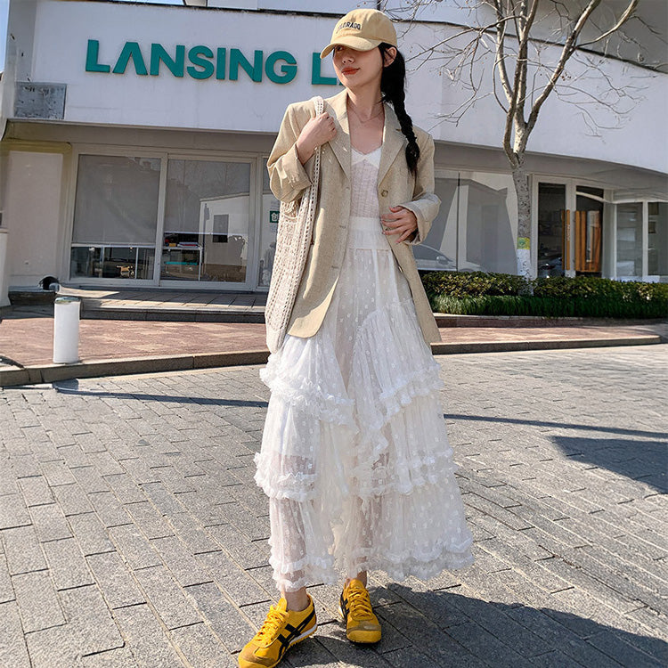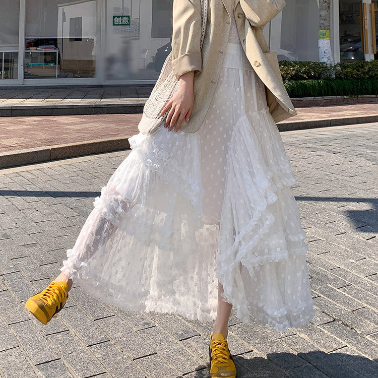 大人ガーリーに着こなす、ドットレースフレアスカート