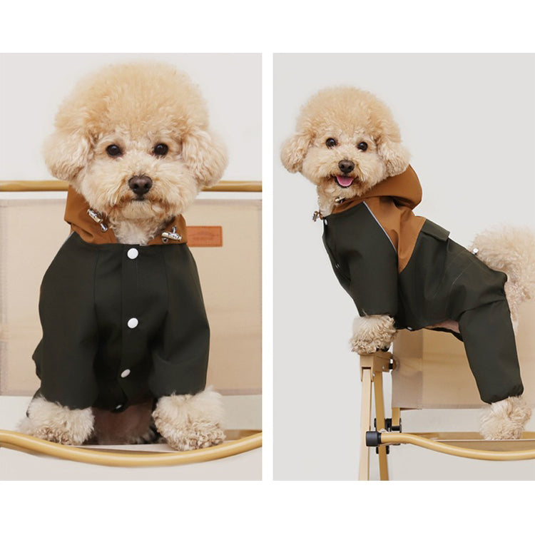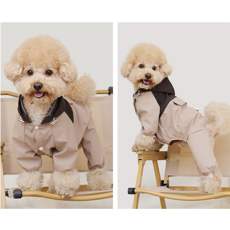 この犬用レインコートは、防水性のあるしっかり素材で毛並みを濡らさず、軽くて動きやすいから愛犬もストレスフリー。落ち着いた配色はどんな毛色にもなじみ、写真映えもばっちりです。シンプルで飽きのこないデザインは、毎日のお散歩やお出かけにぴったりです。