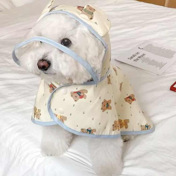 雨の日でも可愛く快適にお散歩できる、くま柄ケープ型犬用レインコートです。