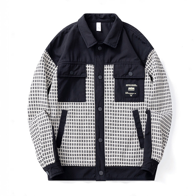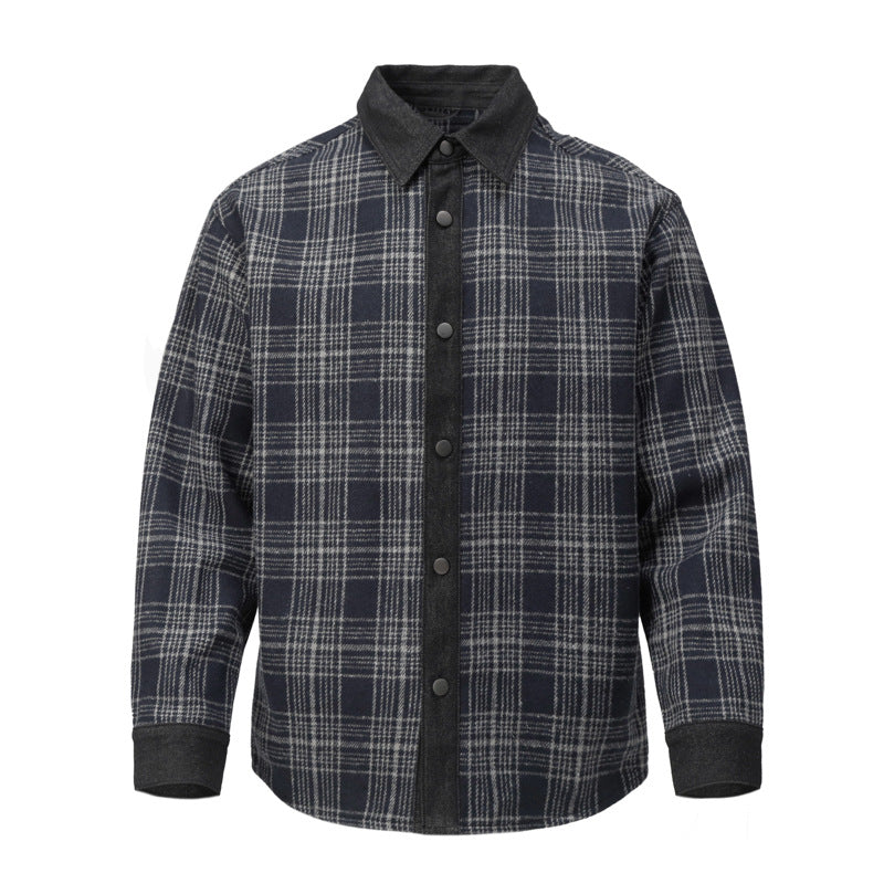 細かなマイクロチェックが映えるワークテイストのシャツジャケット。オフホワイト×ブラックの落ち着いた配色が大人カジュアルに上品なアクセントを添えます。ゆとりのあるボックスシルエットに大きめのフラップポケットを備え、実用性とデザイン性を両立。Tシャツの上に軽く羽織っても、タートルやスウェットを重ねて秋冬のライトアウターとしても活躍する一着です。