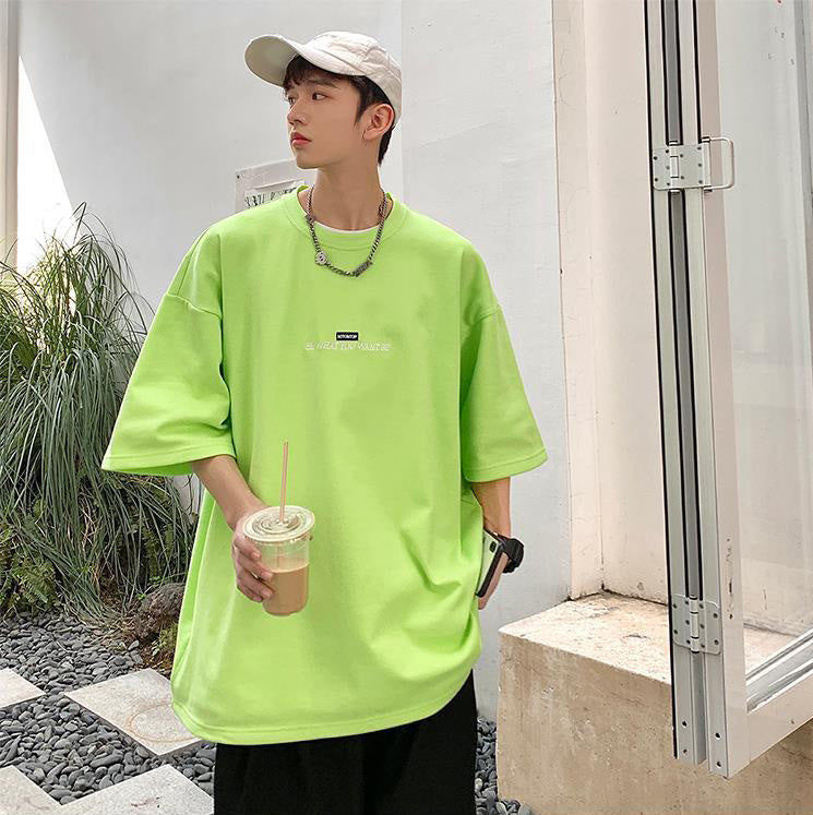 華やかなネオンカラーはTシャツなら取り入れやすい!こちらはルーズシルエットなのでストリートライクなラフな着こなしが可能です。秋冬は、黒やグレーのアウターの下に仕込んで、差し色として使うのもオススメです。