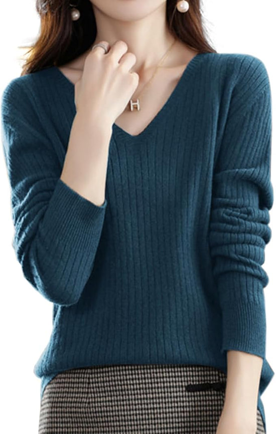「スッキリ抜け感!Vネック」ピュアウールセーター