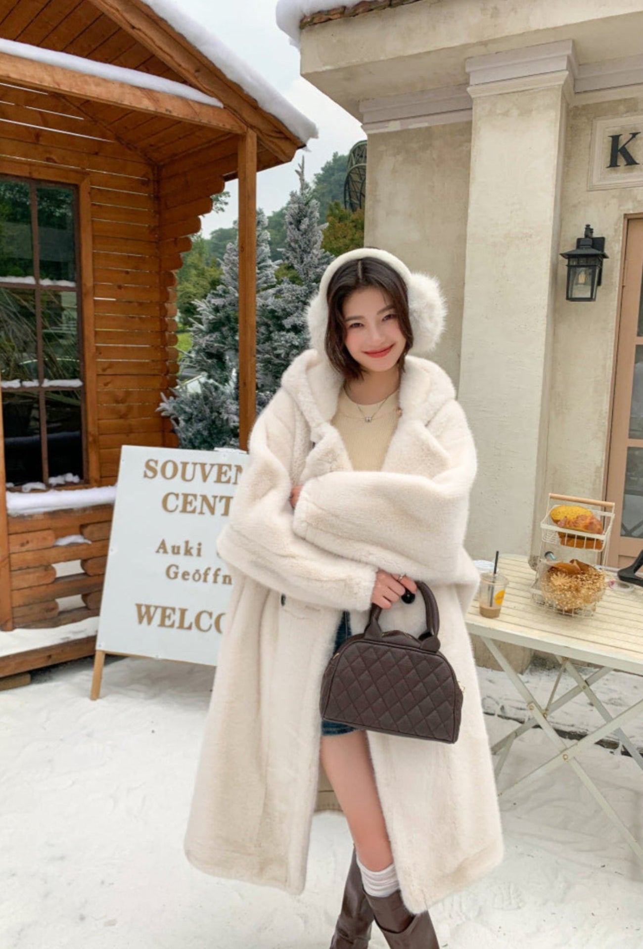 CUTEな分厚いフォーファー♡大きなフード付きで、女の子らしいコーデが完成。💕✨✨