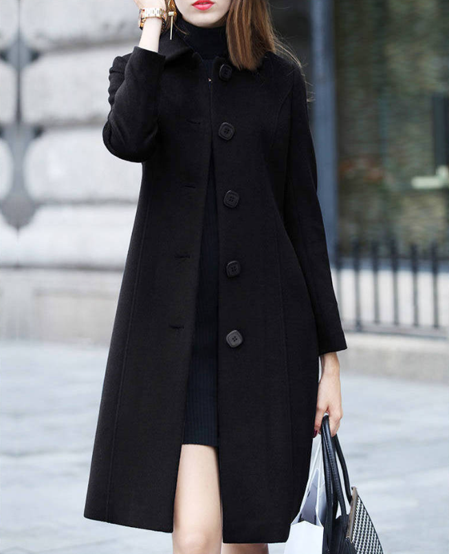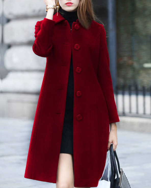 大きめのボタンがアクセントとなり、クラシカルな雰囲気を醸し出すコート。