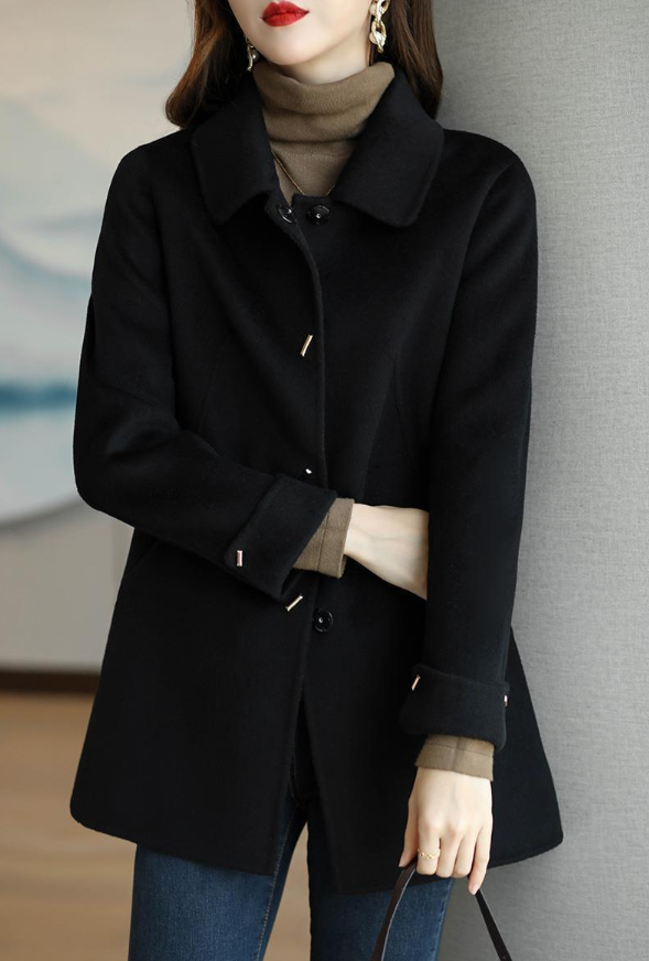 シンプルながら計算された襟元のデザインは、顔まわりをすっきりと見せ、エレガントな印象を引き立てます。