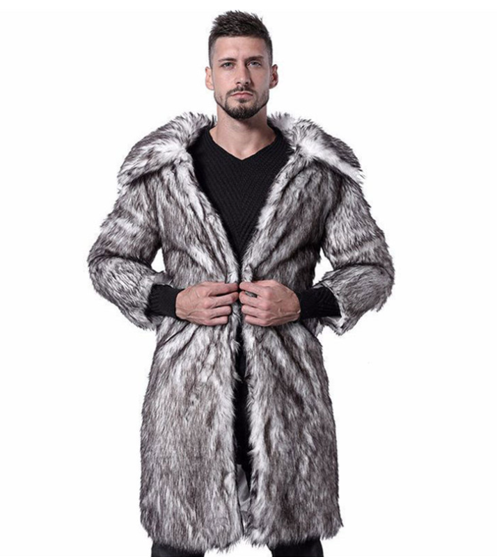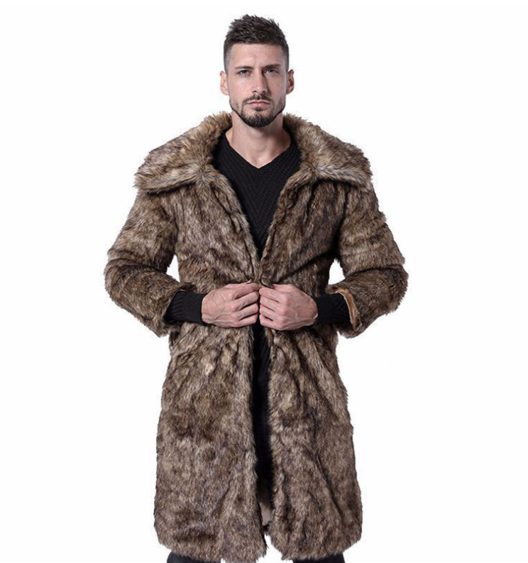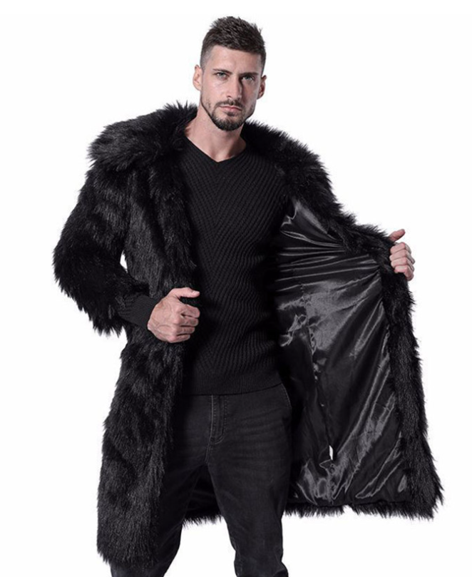 暖かく着こなしやすいミドル丈のイミテーションフォックスコート。