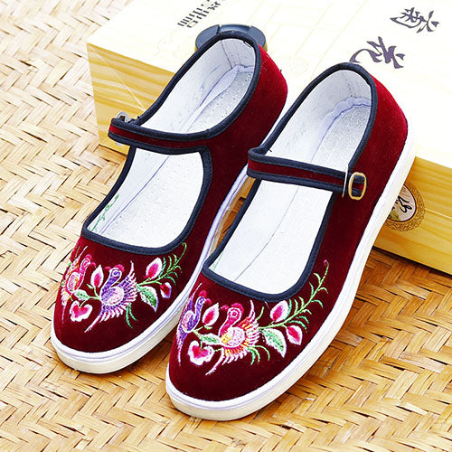 伝統と可愛らしさを兼ね備えた「レトロベロアカンフーシューズ」。 柔らかなベロア素材に、華やかな花や鳳凰の刺繍が施されたデザインは、まるで中国映画のワンシーンのよう!? 履き心地の良い軽量ソールと、ワンタッチで留められるストラップ仕様で、普段使いにもぴったりです。 カラーバリエーションも豊富なので好きな色でいろんなコーデを楽しめます。