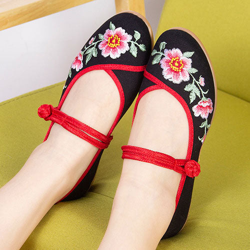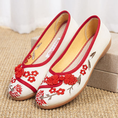 チャイナボタン刺繍シューズ