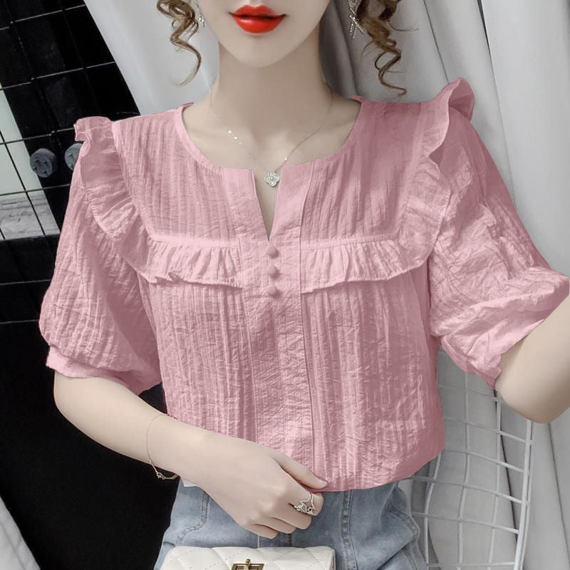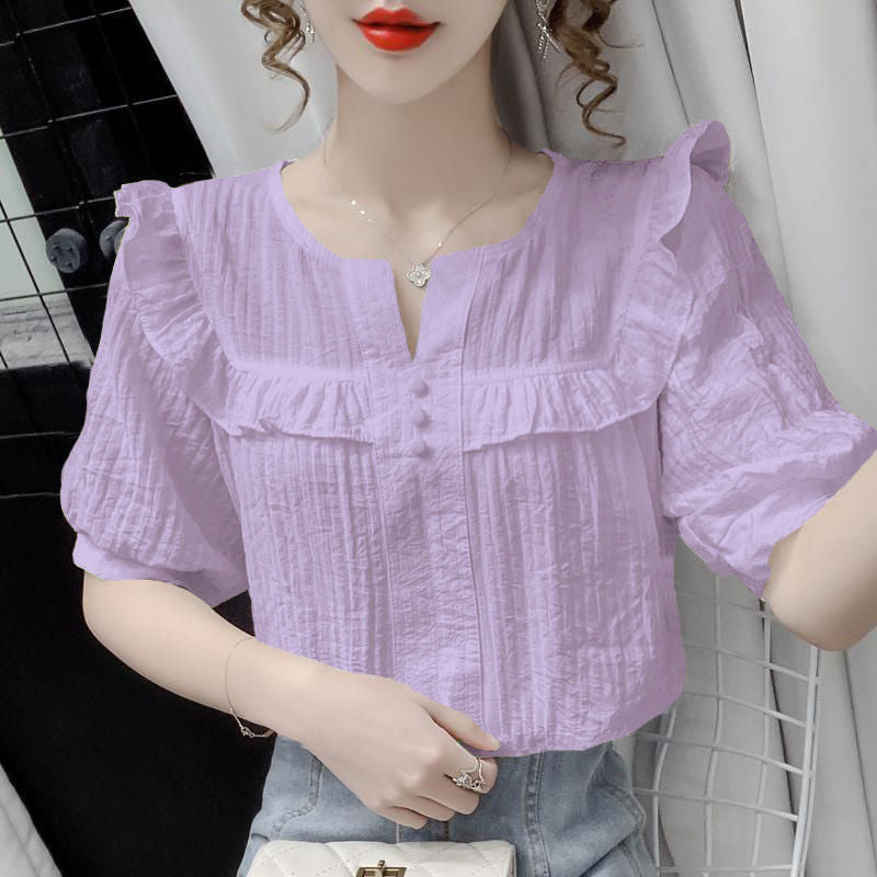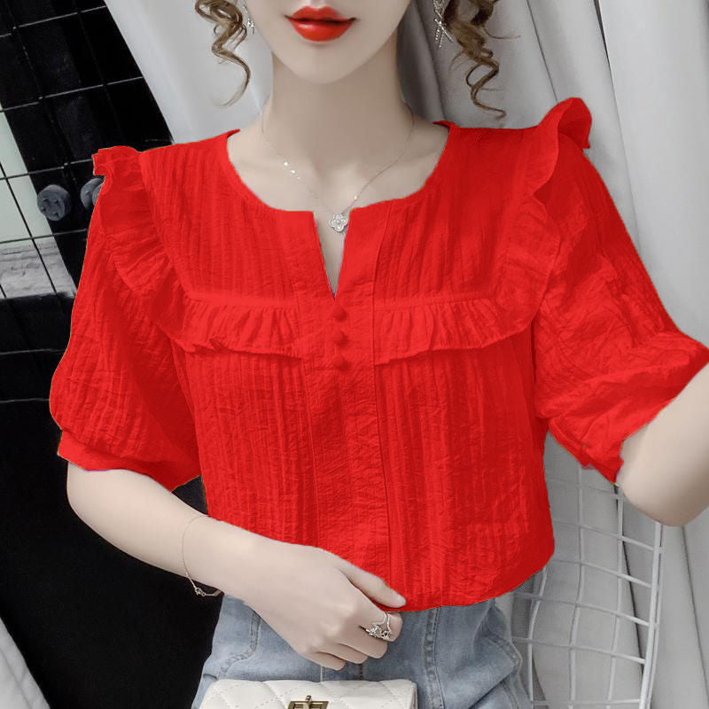 「フリルは苦手」な大人のあなたへ。柔らかなシワ加工素材と控えめなフリルが、顔まわりを一気に明るく見せ、いつものシンプルコーデを一瞬で格上げします。光陰矢の如しの季節、着るだけで気分が上がる8色から、あなたの運命のカラーを見つけてください。