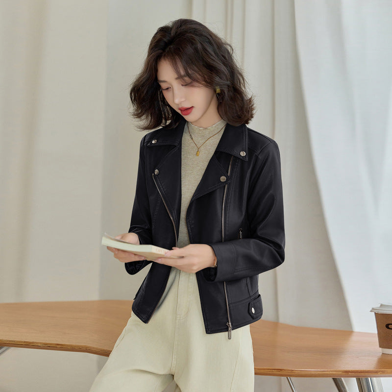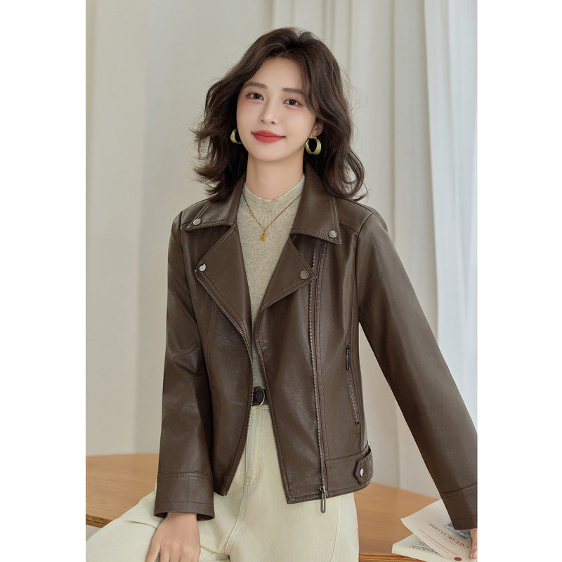 骨ストさんにはハリのあるレザー素材が持つ立体感がぴったり。体にフィットしたサイズ感を選ぶことで上半身のラインが品良くまとまります。