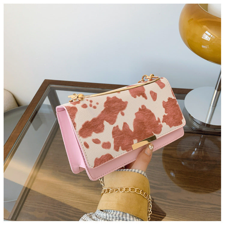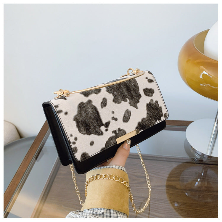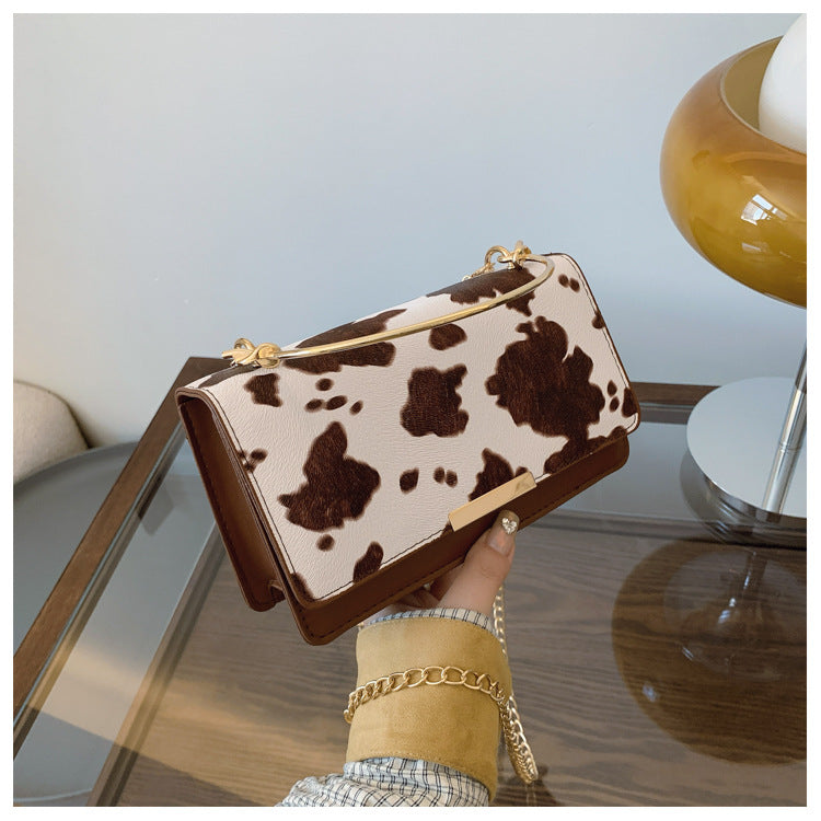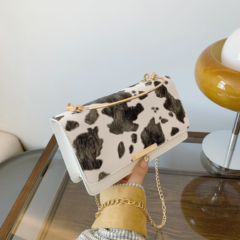 アクセサリー感覚で持ちたいチェーンバッグ。個性的な牛柄と、上品で使いやすいカラー展開で、バランスの取れたデザインです。肌なじみの良いゴールドの金具が華やかさを添え、持つだけでスタイルをワンランクアップ。高見えすること間違いなしの一品です。