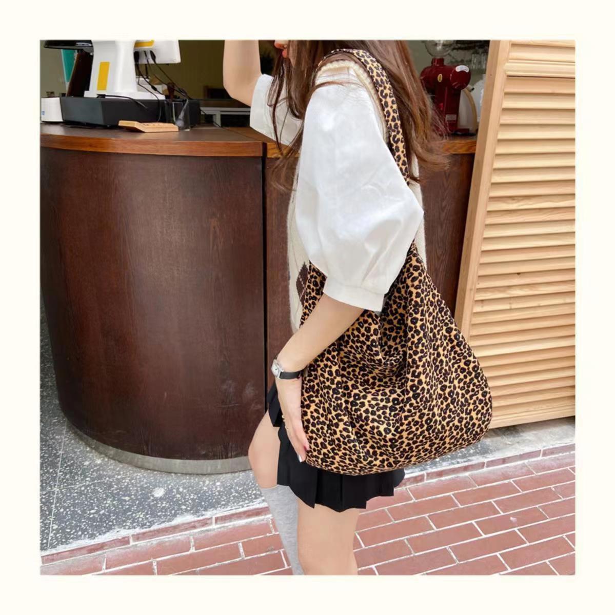 柔らかめのクタッとした生地がかわいい!軽量ながらしっかり大容量で、荷物の量や体の動きに合わせて自然にフィットします。長めのハンドルで肩に掛けやすく、いろいろなシーンで活躍してくれます。ゴージャスな印象のヒョウ柄をカジュアルに取り入れて、一味違ったおしゃれを楽しんで。