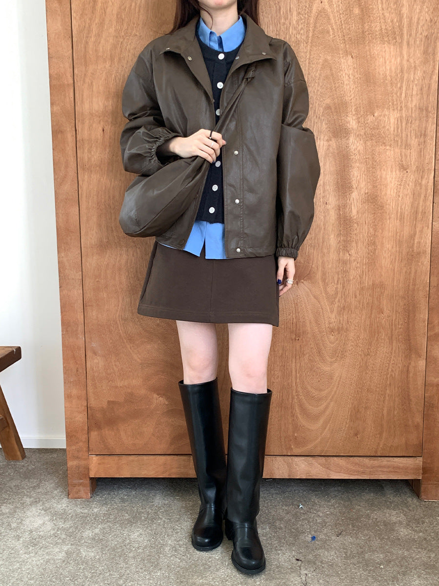 ほんのりビターなブラウンが、冬の装いをぐっと引き締める。シンプルなのに印象的な、上品さ漂うミニスカートです。