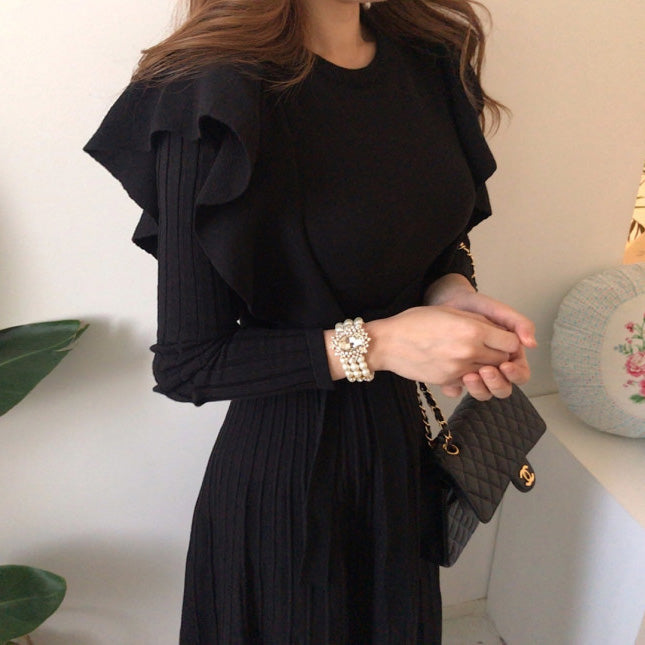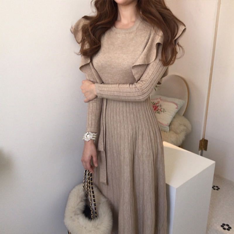 【秋冬のエレガントスタイルを叶える 】ラッフルニットワンピース