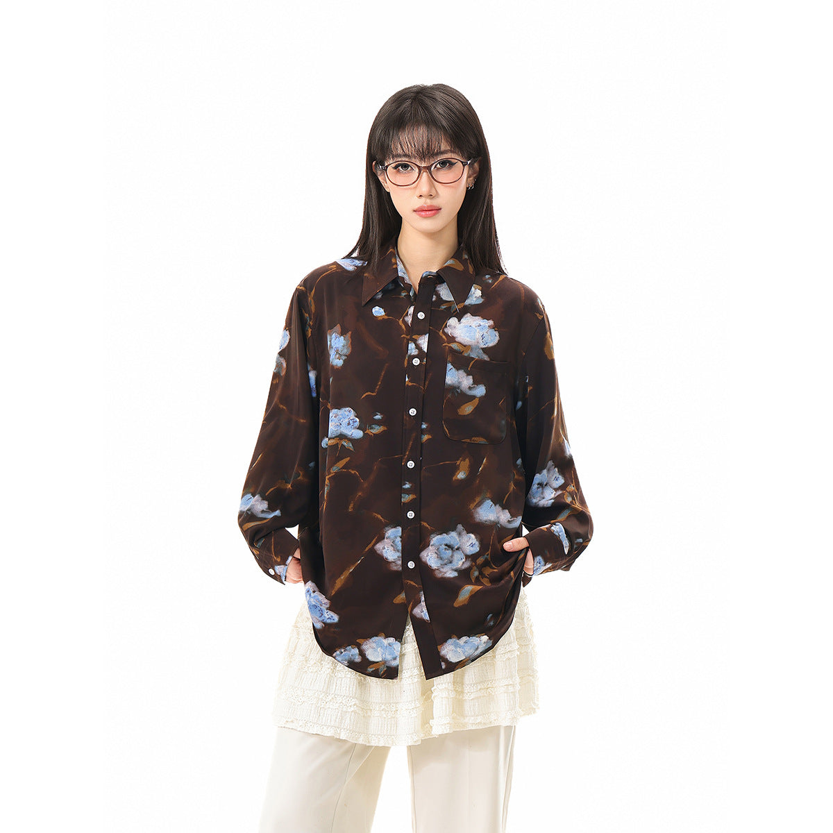 ブルーフローラルシャツ