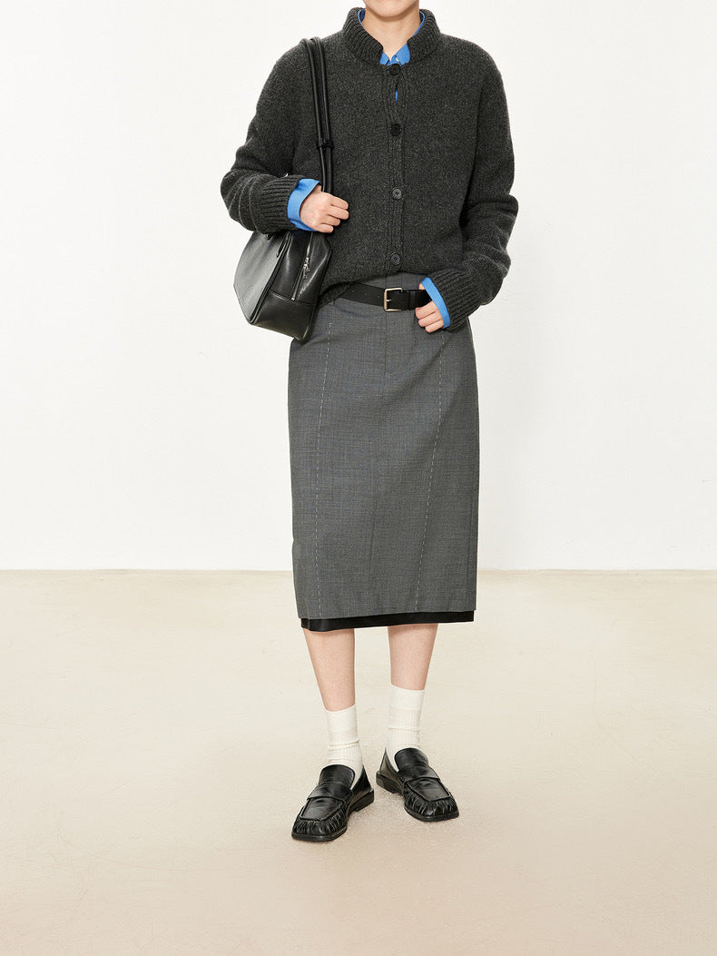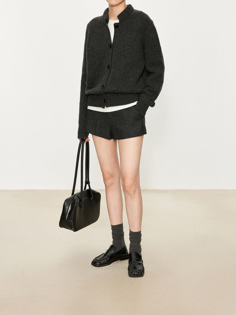 - シンプルで重厚感のあるスタンドカラーカーディガン