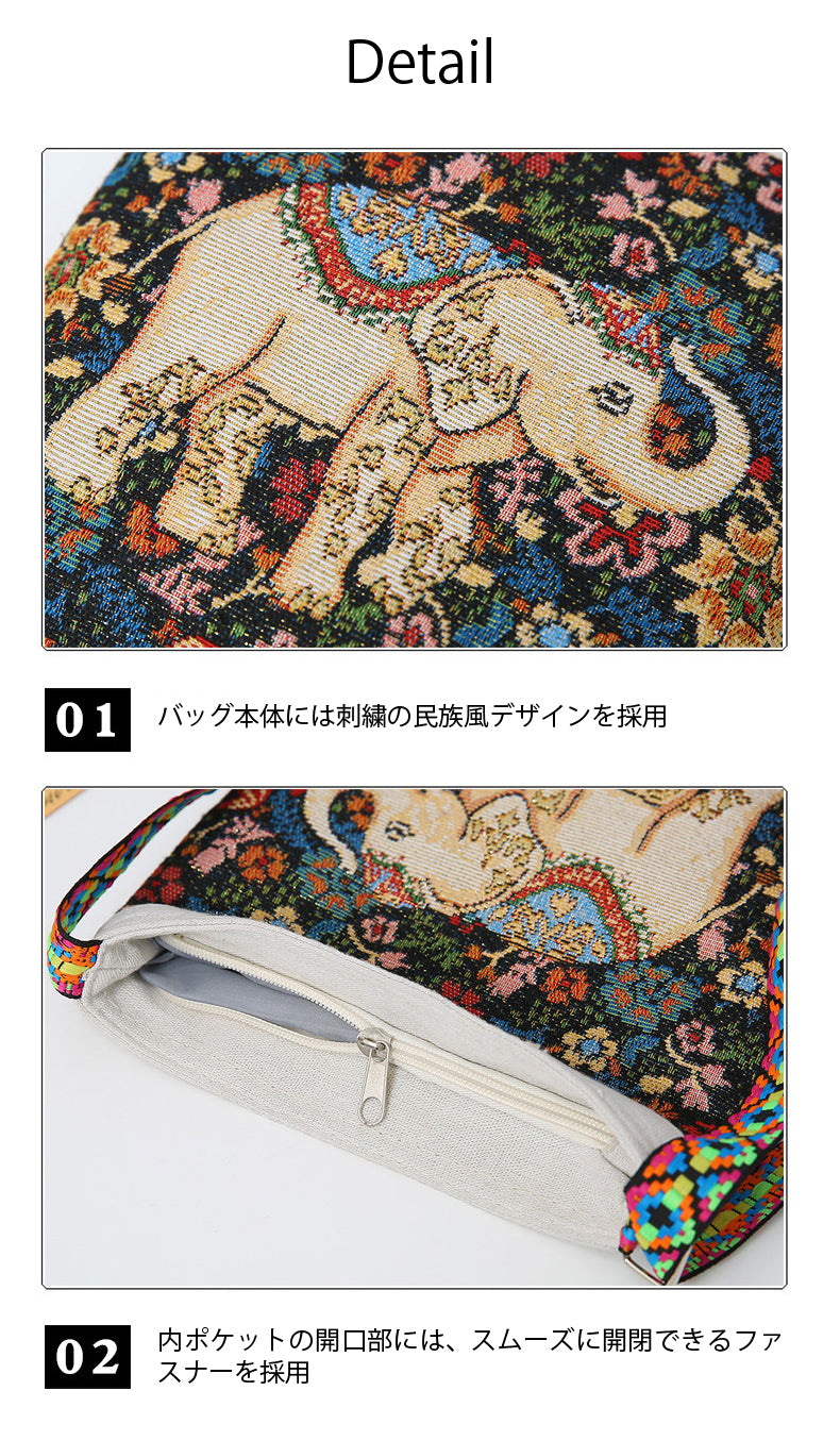 エスニック柄 ジャガード ショルダーバッグ 象 モチーフ 斜めがけ ミニトート レディース 軽量 フェス ギフト