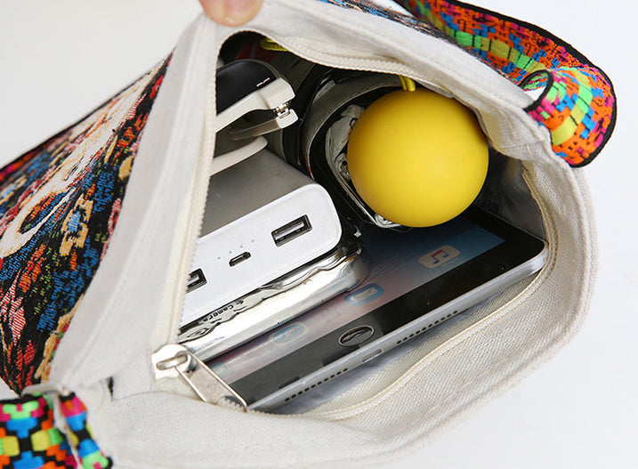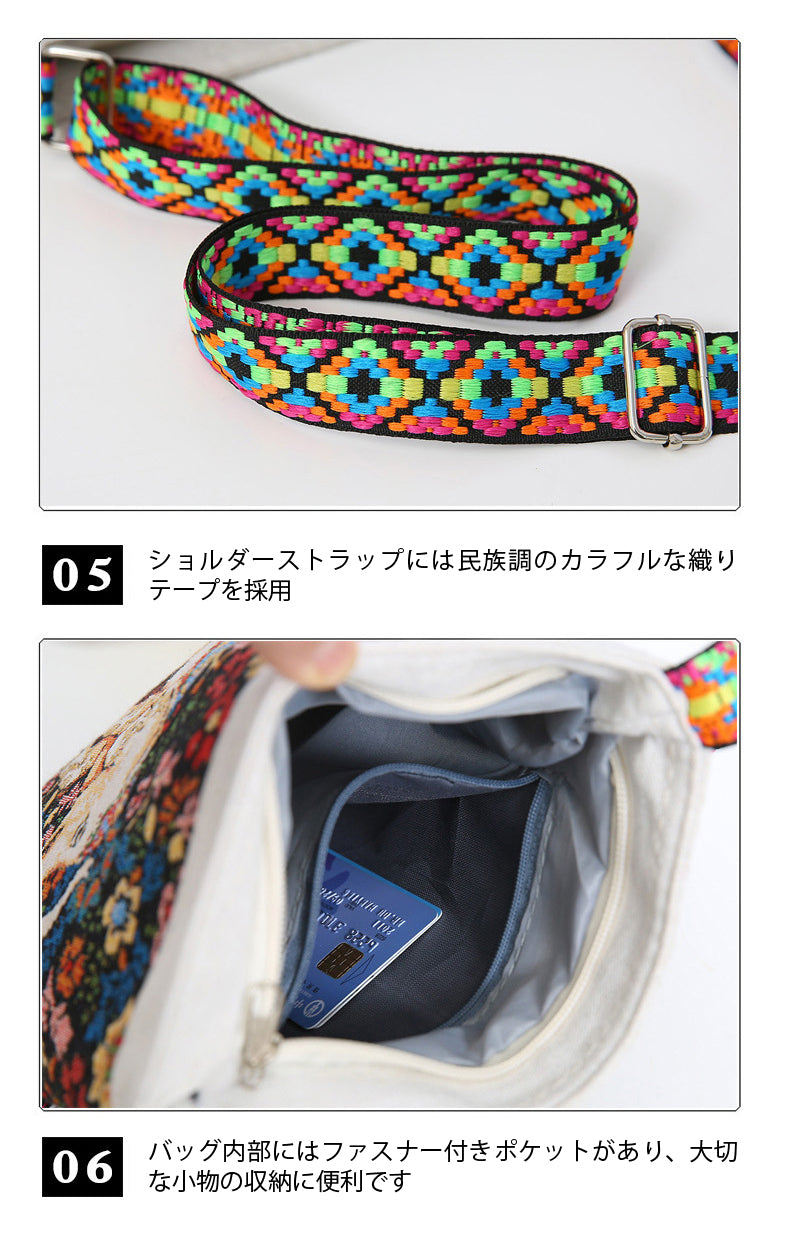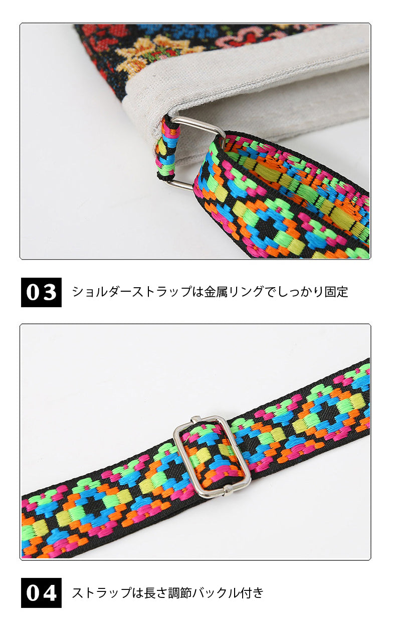- カラフルな民族調のショルダーストラップは、長さ調整・取り外しが可能。