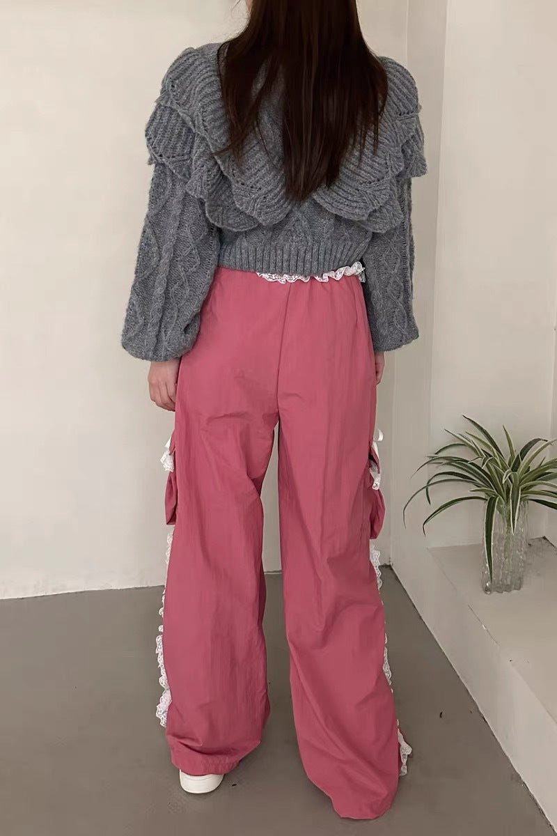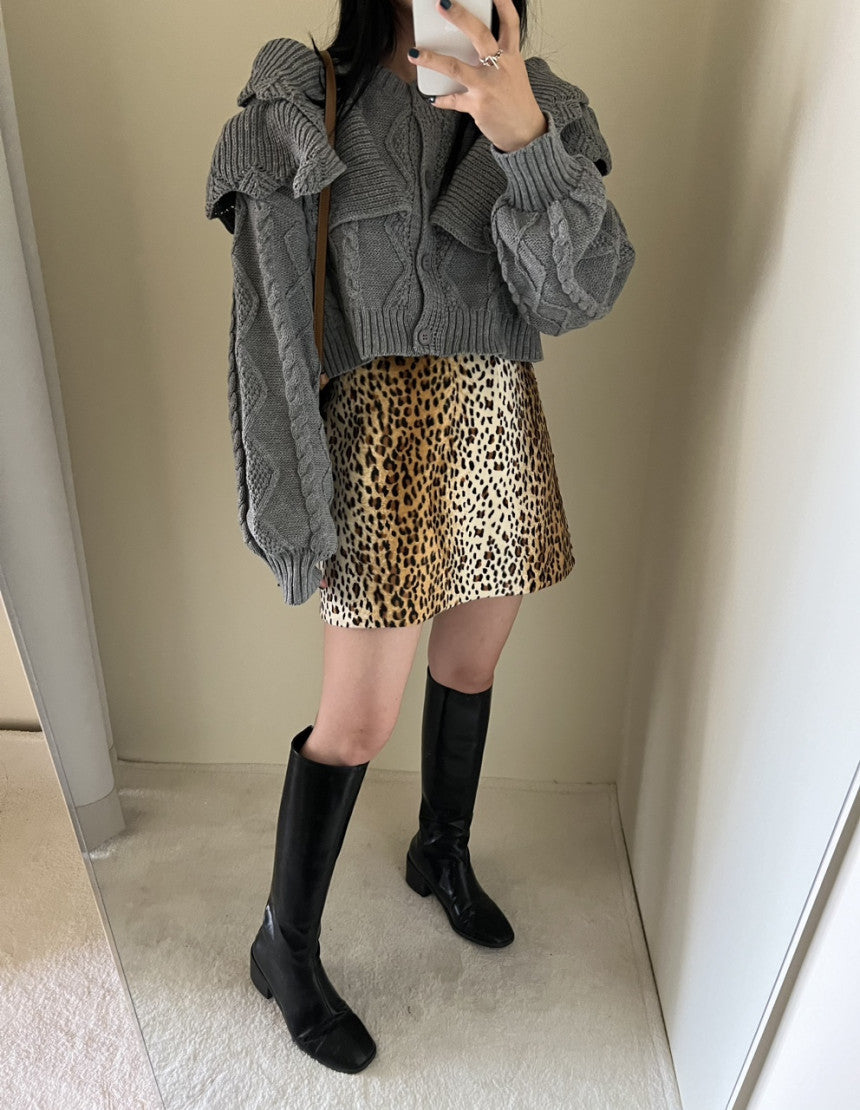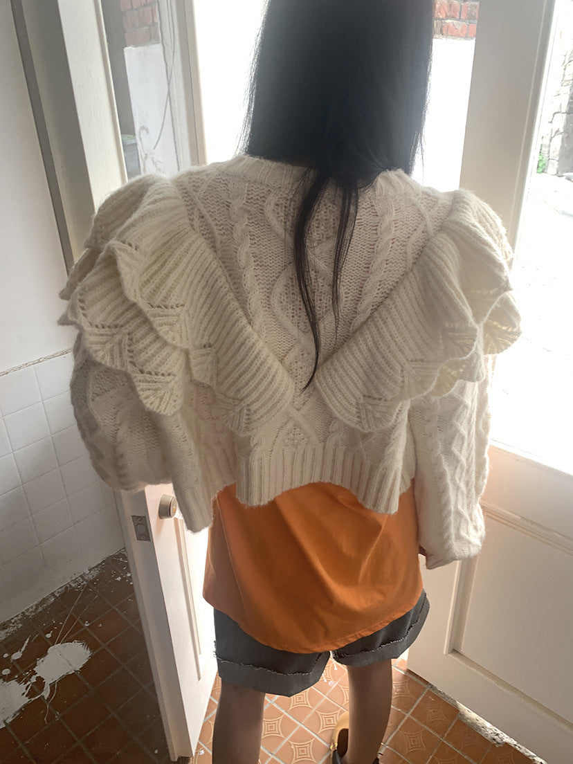- 肩の2段ラッフルが特徴的なショート丈ニットカーディガン