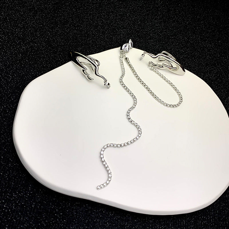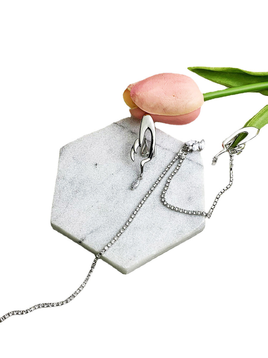 耳元を華やかに魅せる、エレガントな非対称デザインのジルコンタッセルイヤリング。