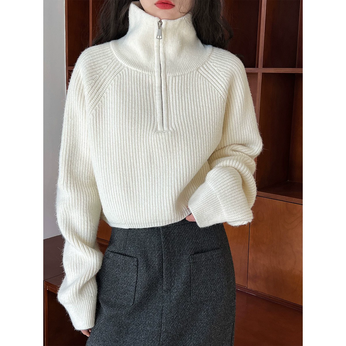 ハーフジップニット