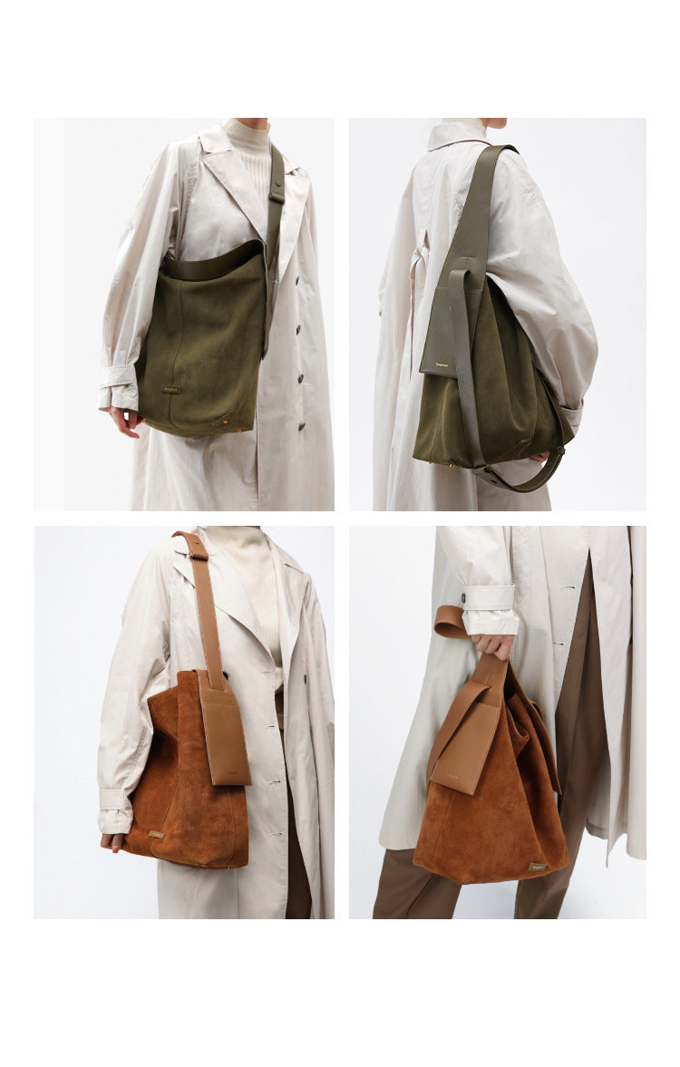 くったりと揺れるラインが、装いに“抜け感”を添えながらも、太めのストラップと直線的な輪郭が適度な引き締め役に。
