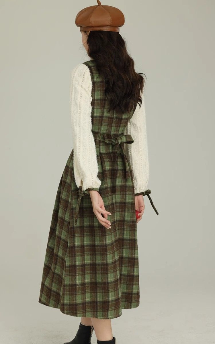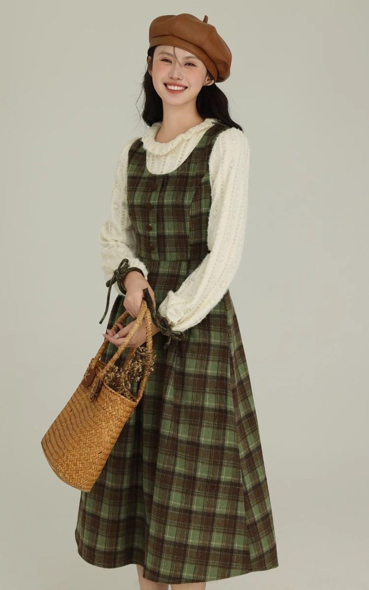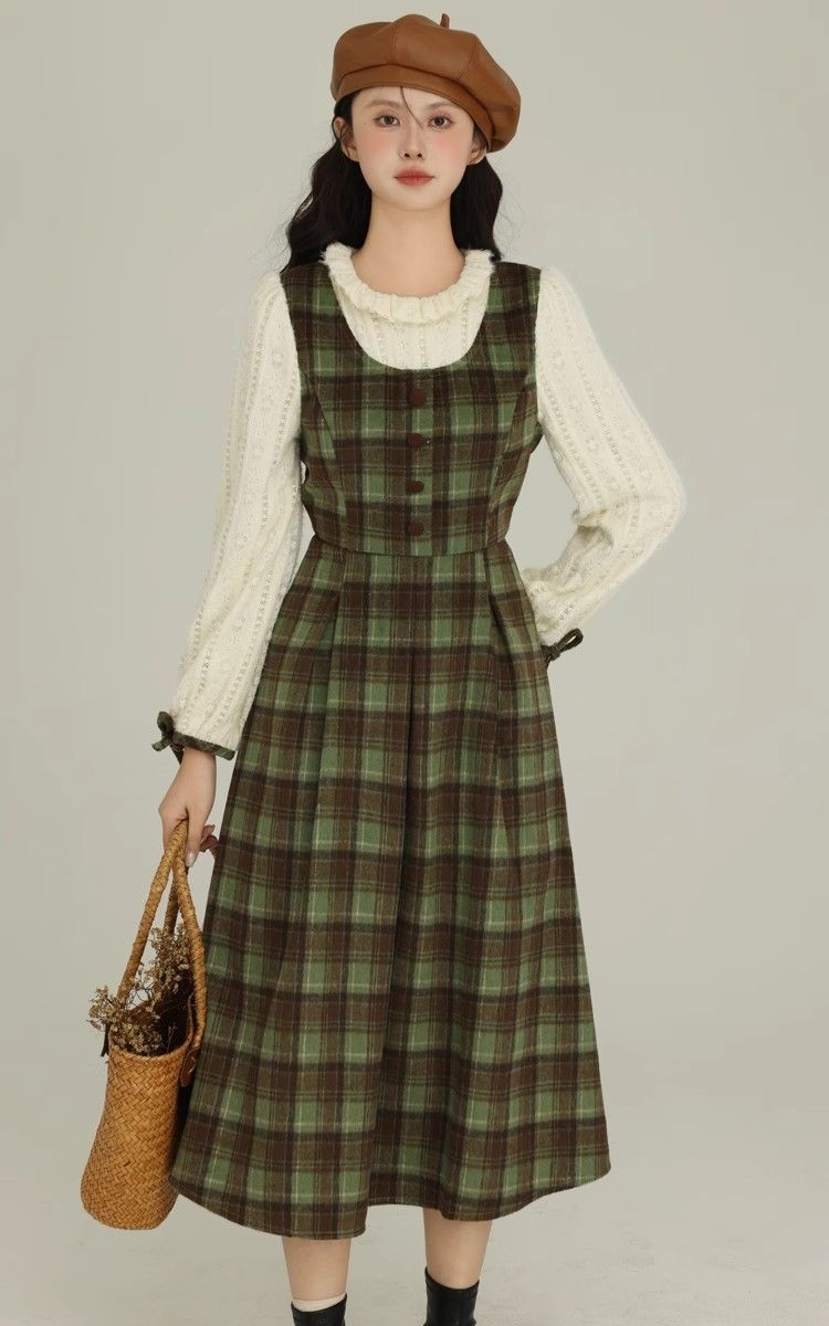 - ブラウスとワンピースを重ねたように見えるフェイクツーピース