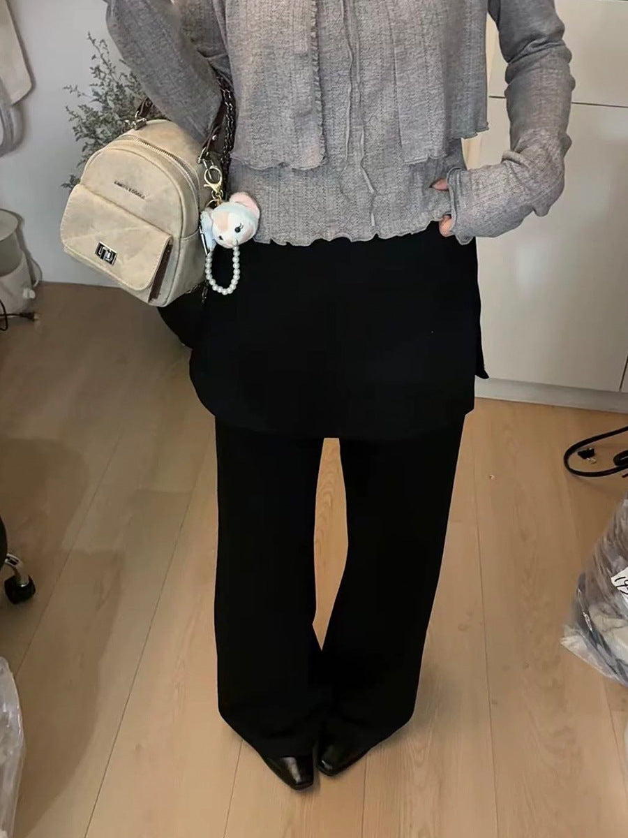 ・美シルエット: フレアパンツの美脚効果と、スカートとのレイヤードによるスタイルアップ効果で、旬のバランスを簡単に実現します。モカブラウンで統一すれば、統一感のある柔らかなワントーンコーデが完成。