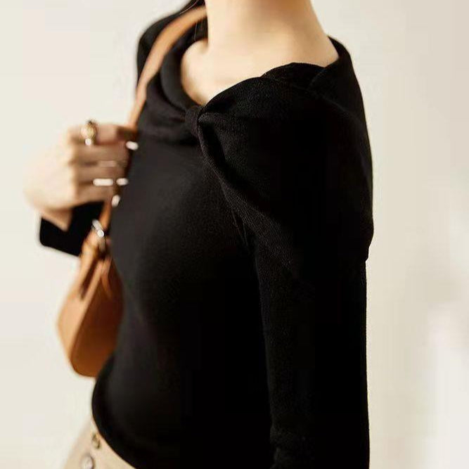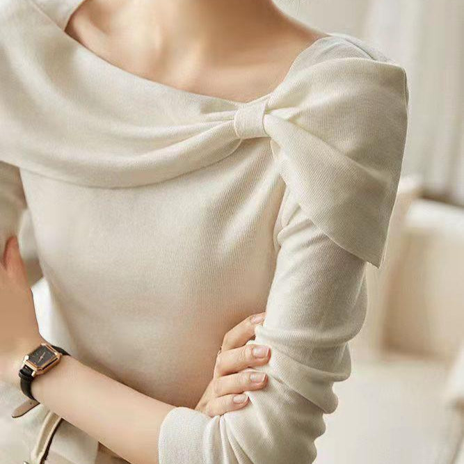 リボンオフショルニット