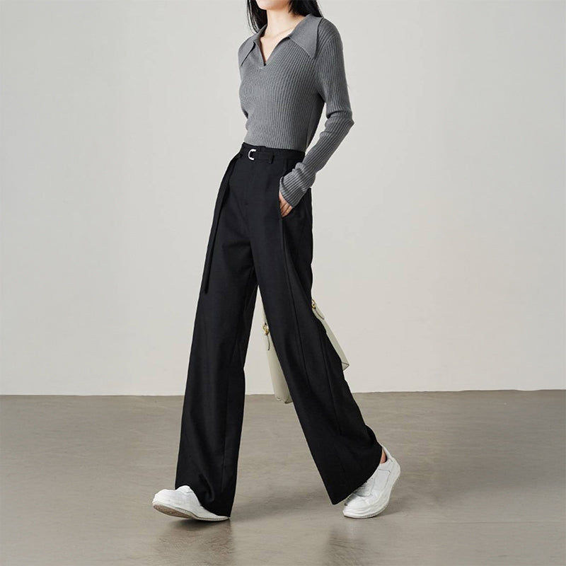 - すっきりとしたシルエットが魅力の美脚ストレートパンツ。