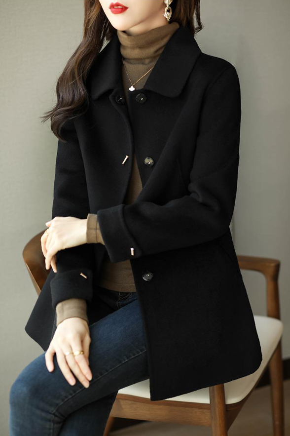 - シンプルながら計算された襟元のデザインは、顔まわりをすっきりと見せ、エレガントな印象を引き立てます。