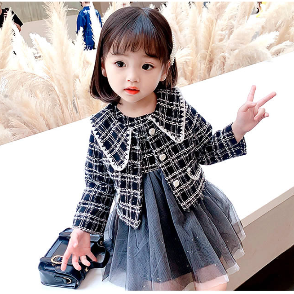 - ふんわり広がるチュールスカートに、ツイードジャケットを合わせた上品なコーデ