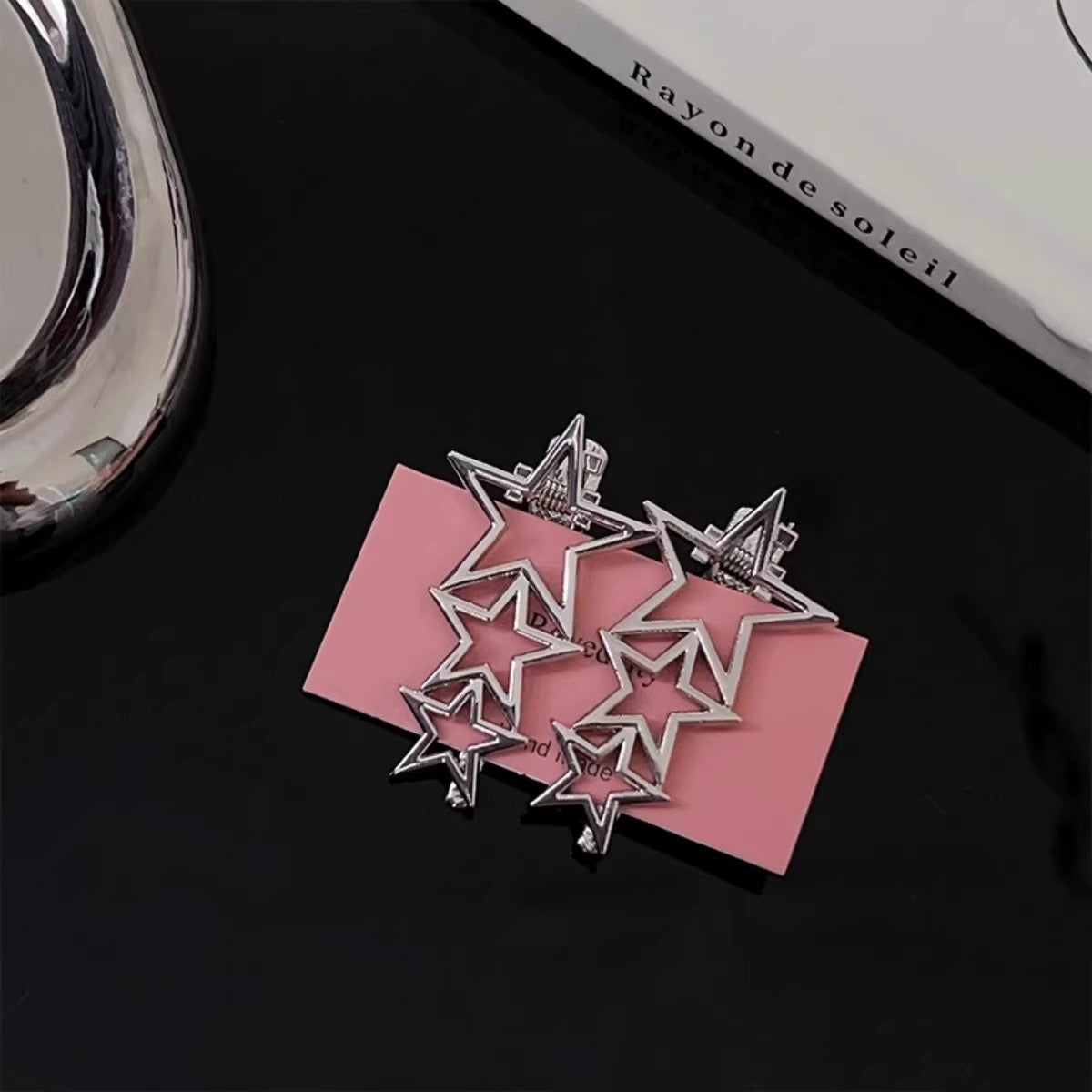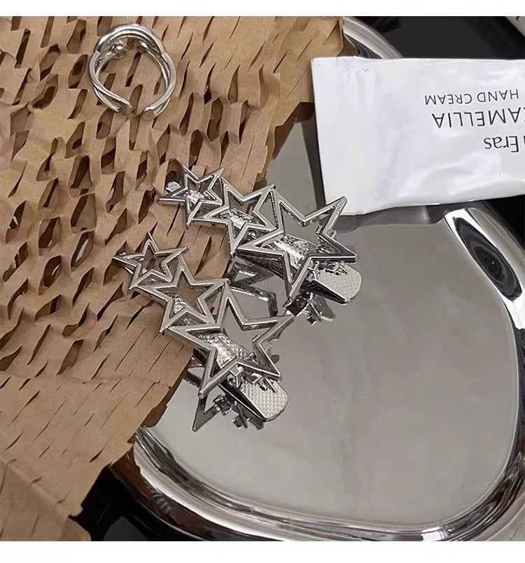 甘くてクールなy2kシルバーメタルリトルスターサイドヘアピン