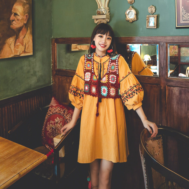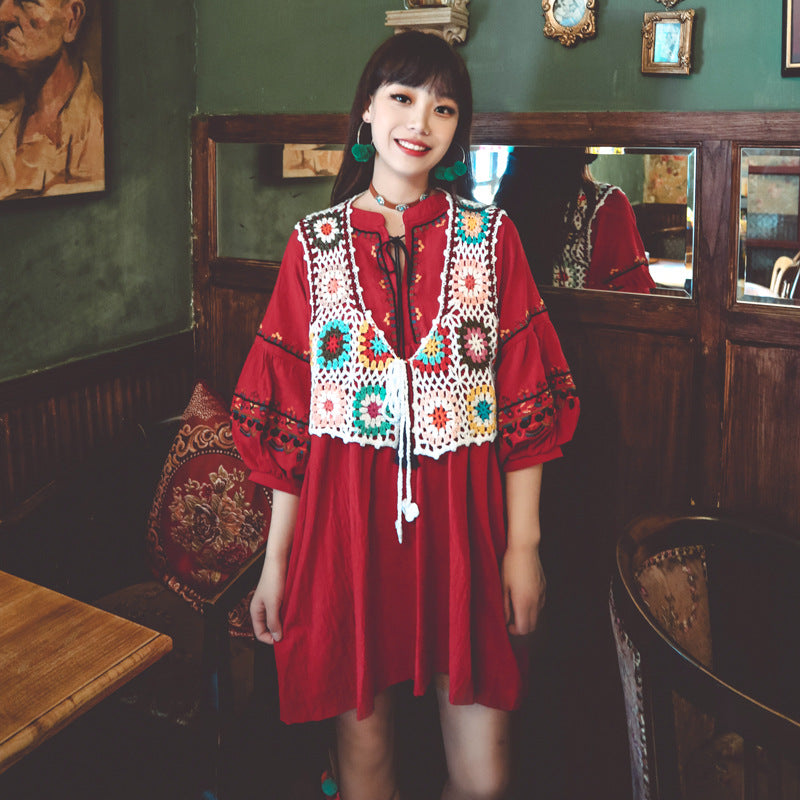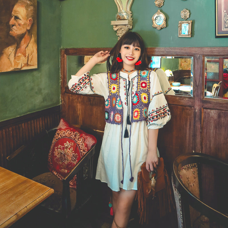 - ヴィンテージ感のあるカラフルパターンが特徴のクロシェ編ベスト