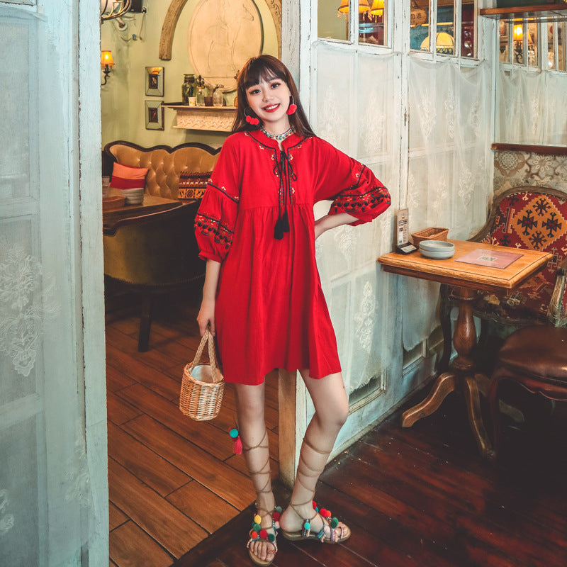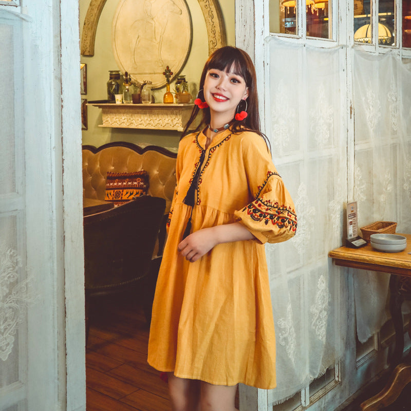 - オリエンタルなムード漂う、華やかな刺繍をあしらった膝上丈のワンピース