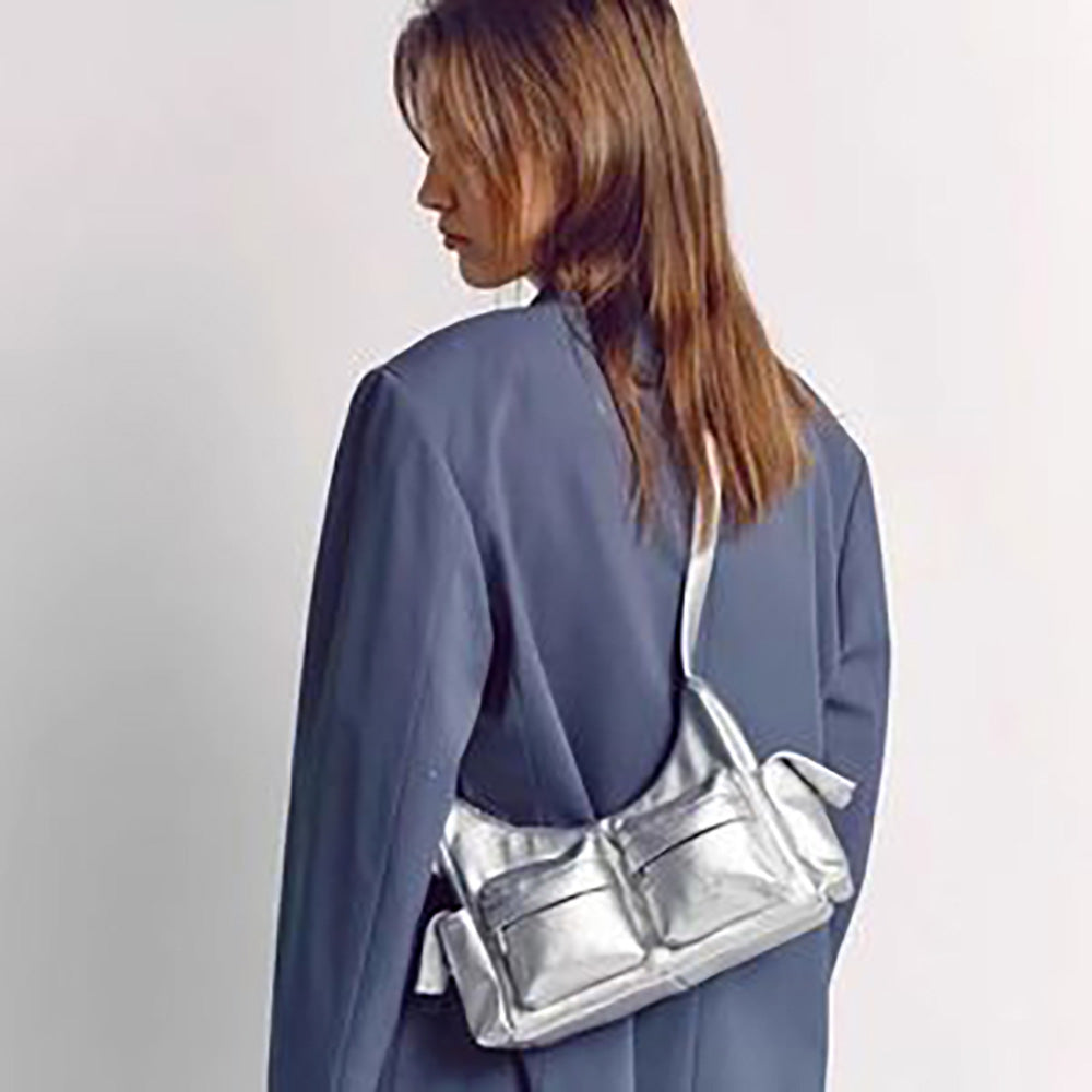 メタリック素材のショルダーバッグ。