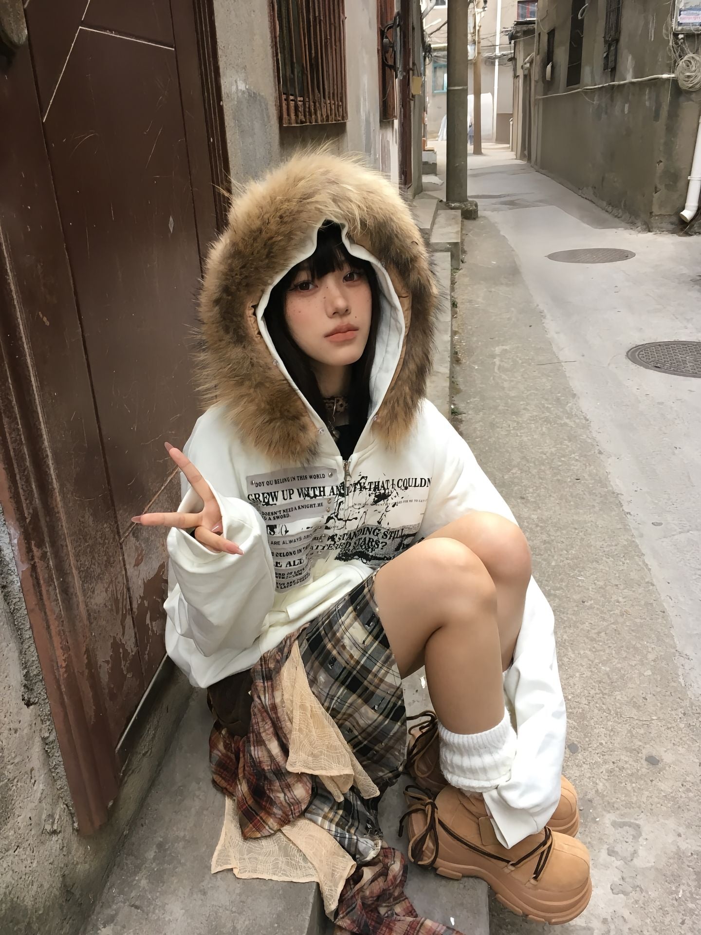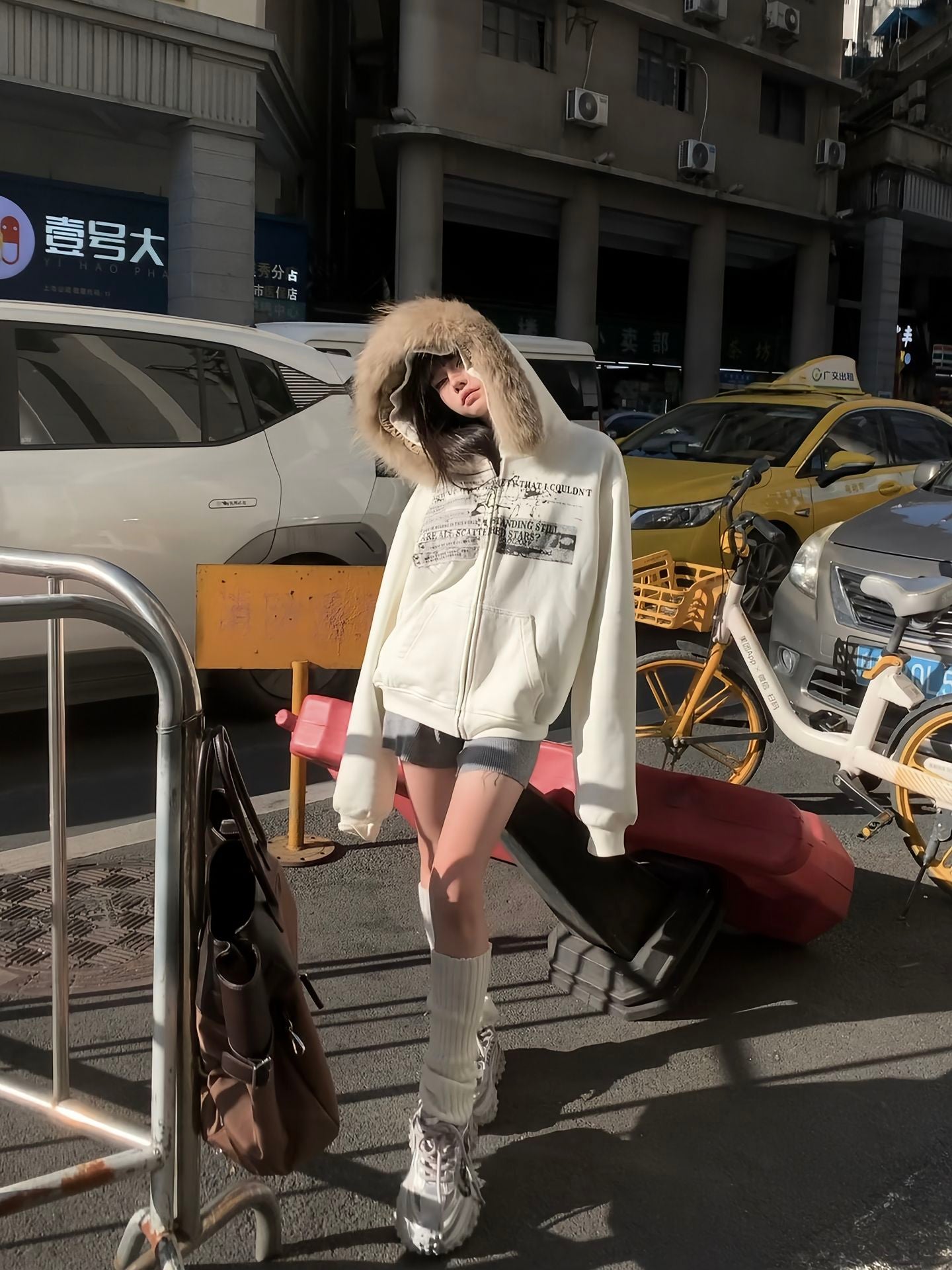 グラフィックプリントが映えるY2Kムード全開のジップアップパーカー。